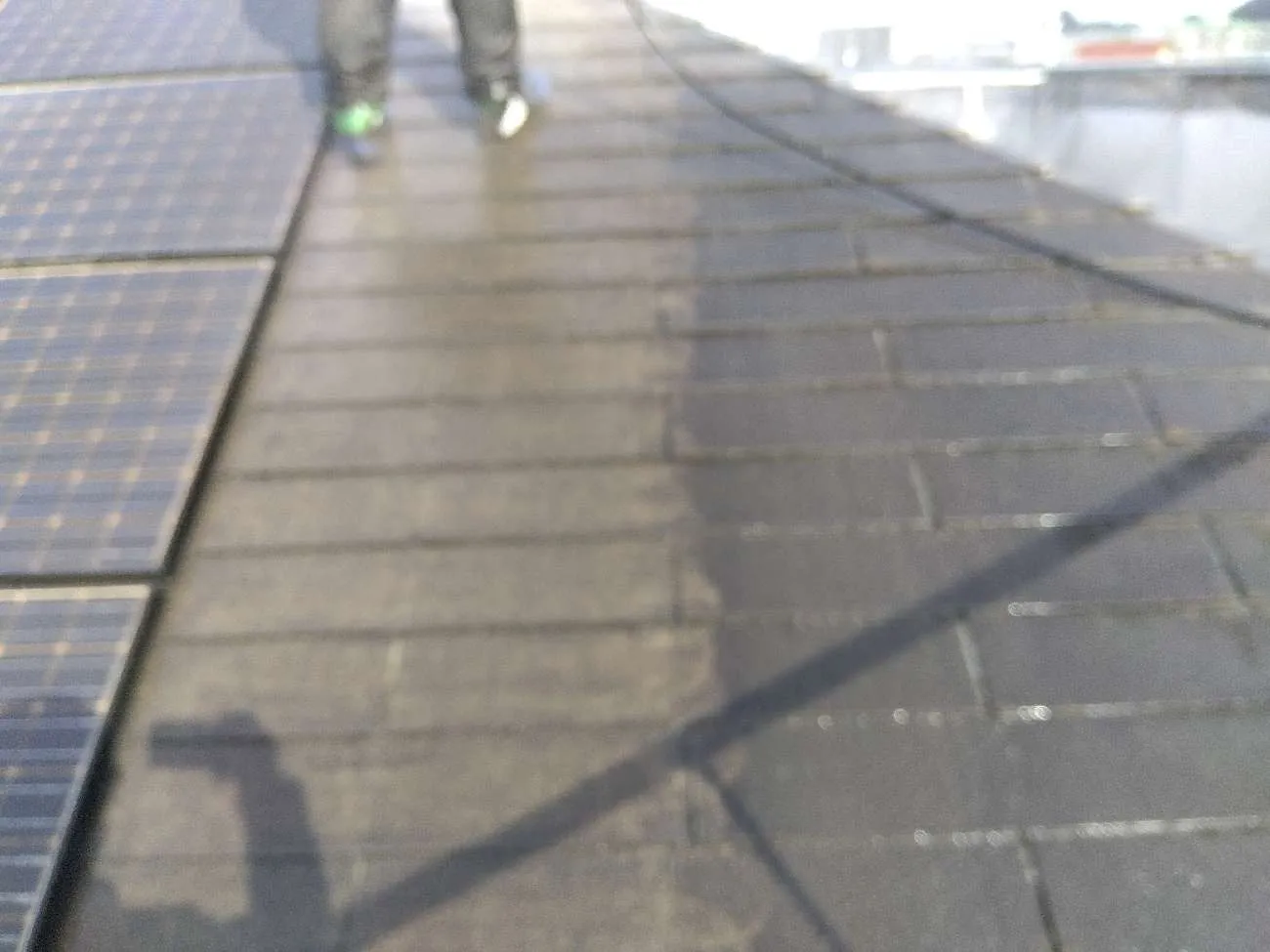 先日は高圧水洗浄を行い、既存の瓦の汚れや塗膜の弱い部分を
